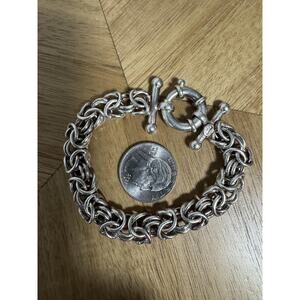 Sterling Silver 925 Byzantine Link Bracelet Toggle Clasp Heavy Chunky W Mark