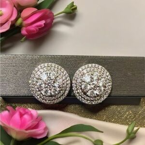 Sterling Silver 925 CZ Stunning Cluster Rhodium Plated Stud Earrings New!