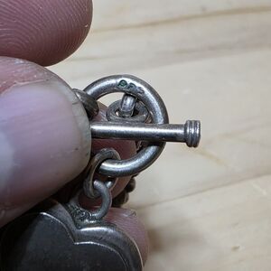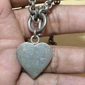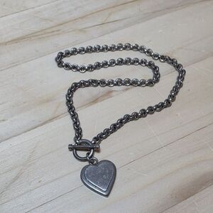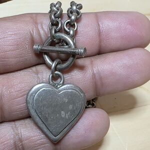 Sterling Silver 925 Cable Link Toggle Necklace Heart Charm 16 In Weighs 52 Grams shows signs of wear such as scratches and garnishing sold as is see pictures for reference