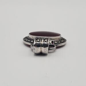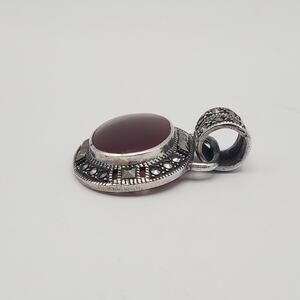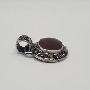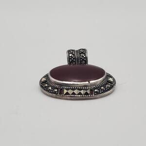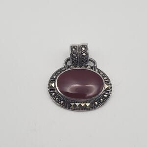 Sterling Silver 925 Carnelian and Marcasite Oval Pendant