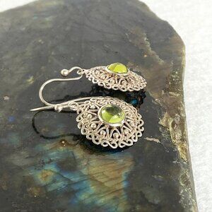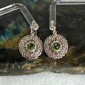 Sterling Silver 925 Celtic Infinity Knot Round Filigree Peridot Cabochon Dangle Earrings