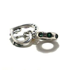 925 Sterling Silver Enamel Spring Flower CZ Heart Dangling Daffodil Spacer Bead Charm Dangling sterling silver charm, stamped S925, with multicolored (green, yellow, and pink) enamel. The heart on the charm is decorated with clear or white cubic zirconias, and the flower has a pink CZ on the dangle drop. Wide spacer bead style charm, fits Pandora Moments bracelets. It's in very good condition.