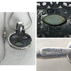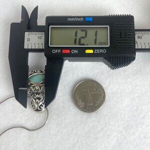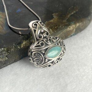 Sterling Silver 925 Chunky Bali Style Scrollwork Turquoise Pendant Necklace 18"