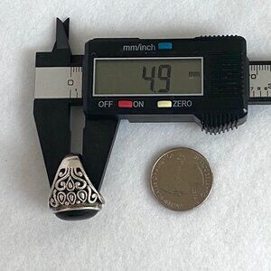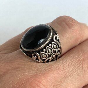Sterling Silver 925 Chunky Oval Black Onyx Cabochon Pierced Scrollwork Ring