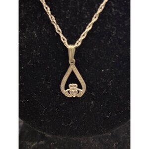 Sterling Silver 925 Claddagh Celtic Pendant Necklace With Teardrop Frame & Chain