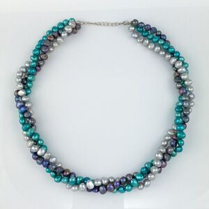 Title: Sterling Silver 925 Clasp Multi-Strand Purple Gray Blue Twisted Pearl Necklace 17"-18.5"