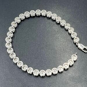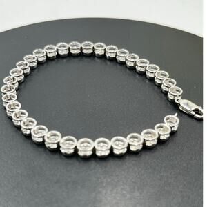 Sterling Silver 925 Classic Diamond Tennis Bracelet Tested 12.6g Design 7.5"