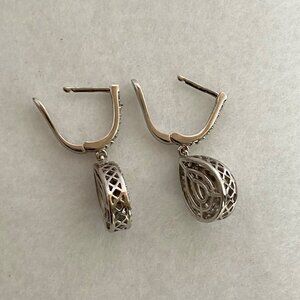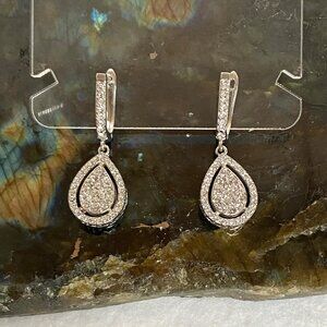Sterling Silver 925 Cubic Zirconia CZ Teardrop Dangle Earrings Hinged Back