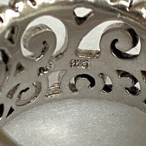 Sterling Silver 925 Curved Pierced Scrollwork 0.5" Wide Band Ring Size 6.5