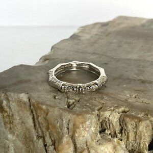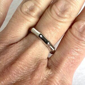 Sterling Silver 925 DBJ Bamboo Style Single Diamond Band Ring Sz 6.75