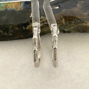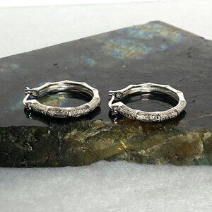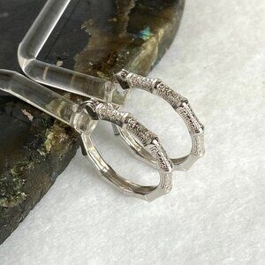 Sterling Silver 925 DBJ Bamboo Style Single Diamond Hoop Earrings MISSING STONE