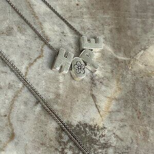 Sterling Silver 925 Dainty "HOPE" Inspirational Nameplate Pendant Necklace Individual Hollow Letters Spell Out HOPE, Letter O With Flower Engraving