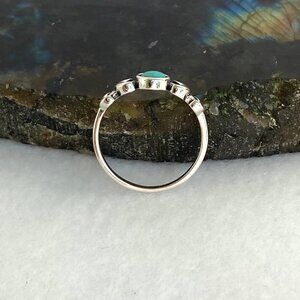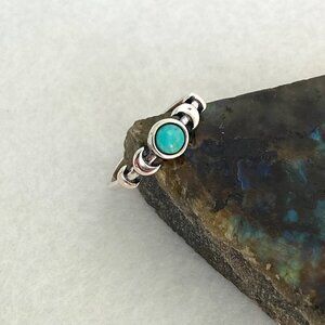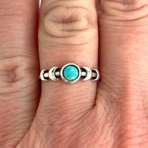Sterling Silver 925 Dainty Minimalist Crescent Moon Phases Turquoise Band Ring