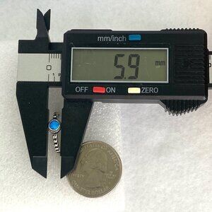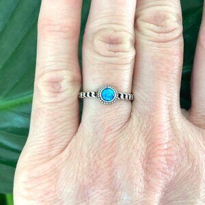 Sterling Silver 925 Dainty Round Blue Lab Created Opal Chain Band Ring Sz 5