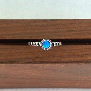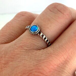 Sterling Silver 925 Dainty Round Blue Lab Created Opal Chain Band Ring Sz 7.25