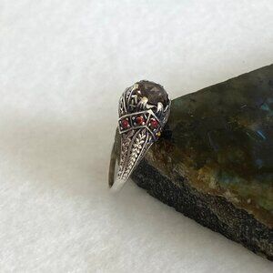 Sterling Silver 925 Dainty Round Smoky Quartz & Opal Accent Ring (THERE IS 1 MISSING OPAL STONE)