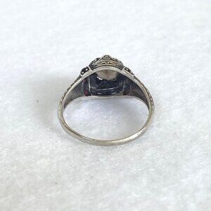 Sterling Silver 925 Dainty Round Smoky Quartz & Opal Accent Ring MISSING STONE