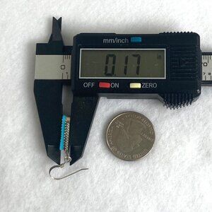 Sterling Silver 925 Dainty Petite Southwest Style Carved Blue Leaf Dangle Earrings