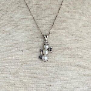 Sterling Silver 925 Dakota West Pearl Snowman Winter Pendant Necklace 18" Chain