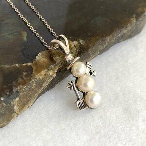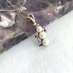 Sterling Silver 925 Dakota West Triple Pearl Snowman Winter Pendant Necklace