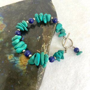 Sterling Silver 925 Dakota West Turquoise Chip & Round Lapis Lazuli Beaded Bracelet