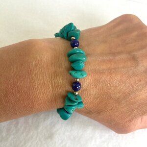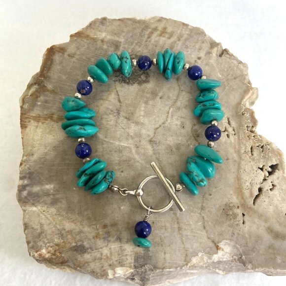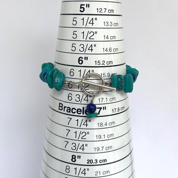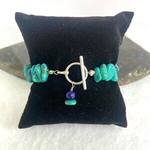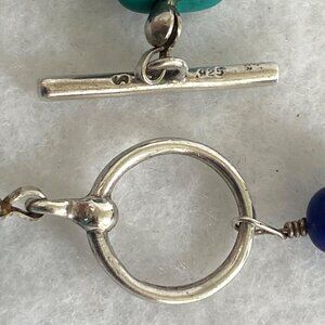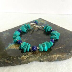 Sterling Silver 925 Dakota West Turquoise Chip & Round Lapis Lazuli Beaded Bracelet