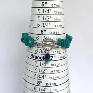 Sterling Silver 925 Dakota West Turquoise Chip & Round Lapis Beaded Bracelet 7"