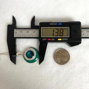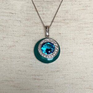 Sterling Silver 925 Round Turquoise Enamel & Rhinestone CZ Pendant Necklace By Chateau D’Argent & David Sigal