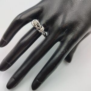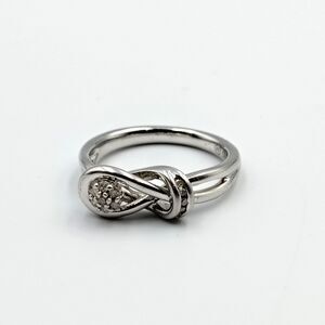 Sterling Silver 925 Designer Pave Diamond Knot Design Ring Sz 7