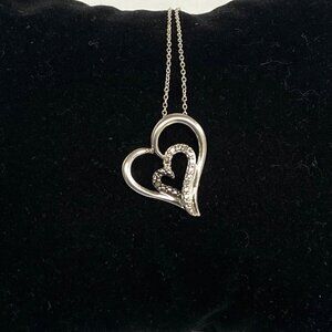Sterling Silver 925 Diamond Open Heart Asymmetric Pendant Necklace 18" Chain