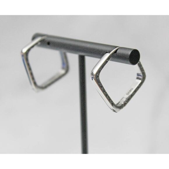 Sterling Silver 925 Diamond Shaped Earrings with Pave Rhinestones E51