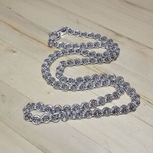 Sterling Silver 925 Double Rollo Link Chain Semi Hollow 32in 96 Grams 8mm Wide
