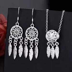 Sterling Silver 925 Dreamcatcher Necklace & Earrings Set Native American Gift