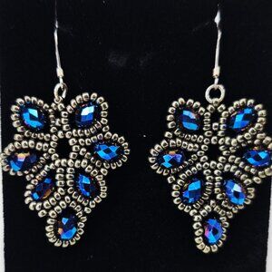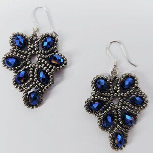 Sterling Silver .925 Electric Blue Beaded Drop French Wire Earrings