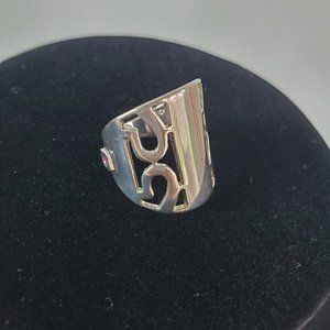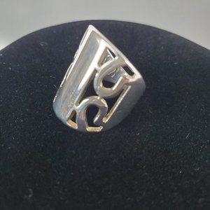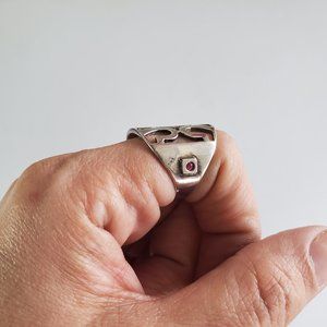 Sterling Silver 925 Elle Jewelry Ring Wide Band with Signature Ruby Size ~6.5