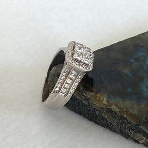Sterling Silver 925 FZN Multi Stone Cubic Zirconia Engagement Ring Sz 6.75