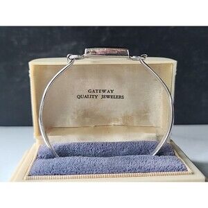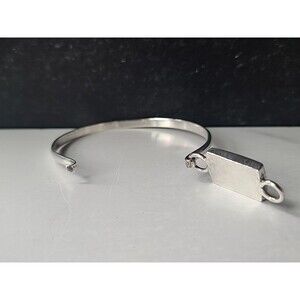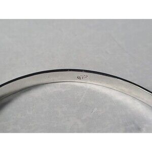 This is a vintage 925 sterling silver faux onyx tension hook bracelet.