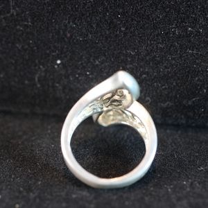 This Sterling Silver ring weighs 6.2 grams. The band is designed similarly to a filigree style. The ring size is a 7.25. There is no Markers Mark Stamp yet the inside band is stamped 925.