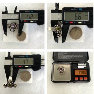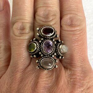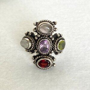Sterling Silver 925 Garnet Peridot Multi Gemstone Cluster Statement Ring Sz 8.75