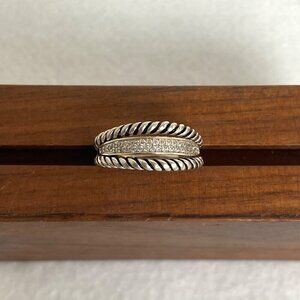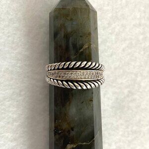 Sterling Silver 925 Gold Accent 2 Row Cubic Zirconia CZ Rope Band Ring Sz 7.75