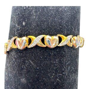 Sterling Silver 925 Gold Heart Link Bracelet CZ XOXO 7" DBJ Signed Dee Berkley