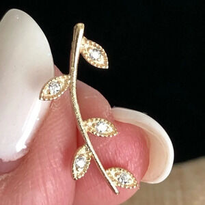 Sterling Silver 925 Gold Vermeil Vine Leaf Delicate Earrings Clear Crystals 3/4”