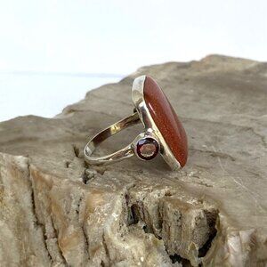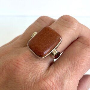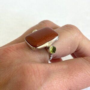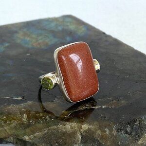 Sterling Silver 925 Goldstone Garnet & Peridot Multi Gemstone Ring Sz 7.75
