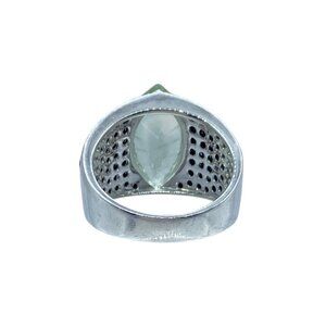 Beautiful Sterling Silver and Green Amethyst wide band ring. This has a large and beautiful Marquise cut center stone with Black CZs accent stones. This is a wide band. The light green with the black look very nice together. This is in good condition with some light patina. This is Designer signed and I have tested the stones with a Presidium Gem Tester.