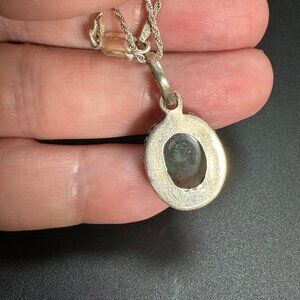 Sterling Silver 925 Green Quartz Beaded Border Pendant Necklace Size 16'' Length