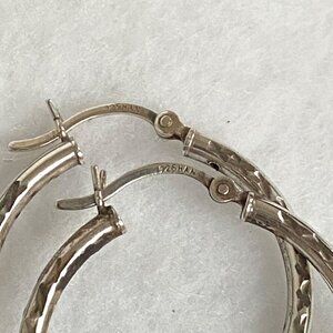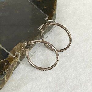 Sterling Silver 925 HAN 1.22" Round Diamond Cut Etched Pattern Hoop Earrings