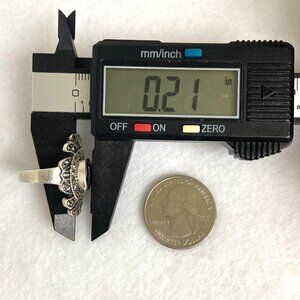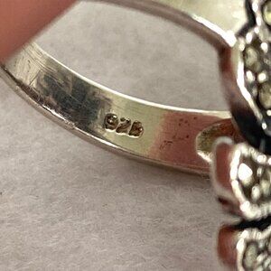 Sterling Silver 925 HAN Thai Oval Amethyst 1" Large Marcasite Ring Sz 6.25