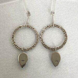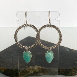 Sterling Silver 925 Hammered Hoop Teardrop Larimar Dangle Drop Earrings