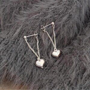 Medium Size silver chain earrings with dangling heart charms. Lightweight, chic, and perfect for adding a sweet romantic touch to any outfit.