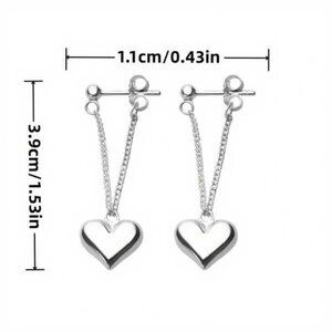 Sterling Silver 925 Heart Drop Chain Earrings